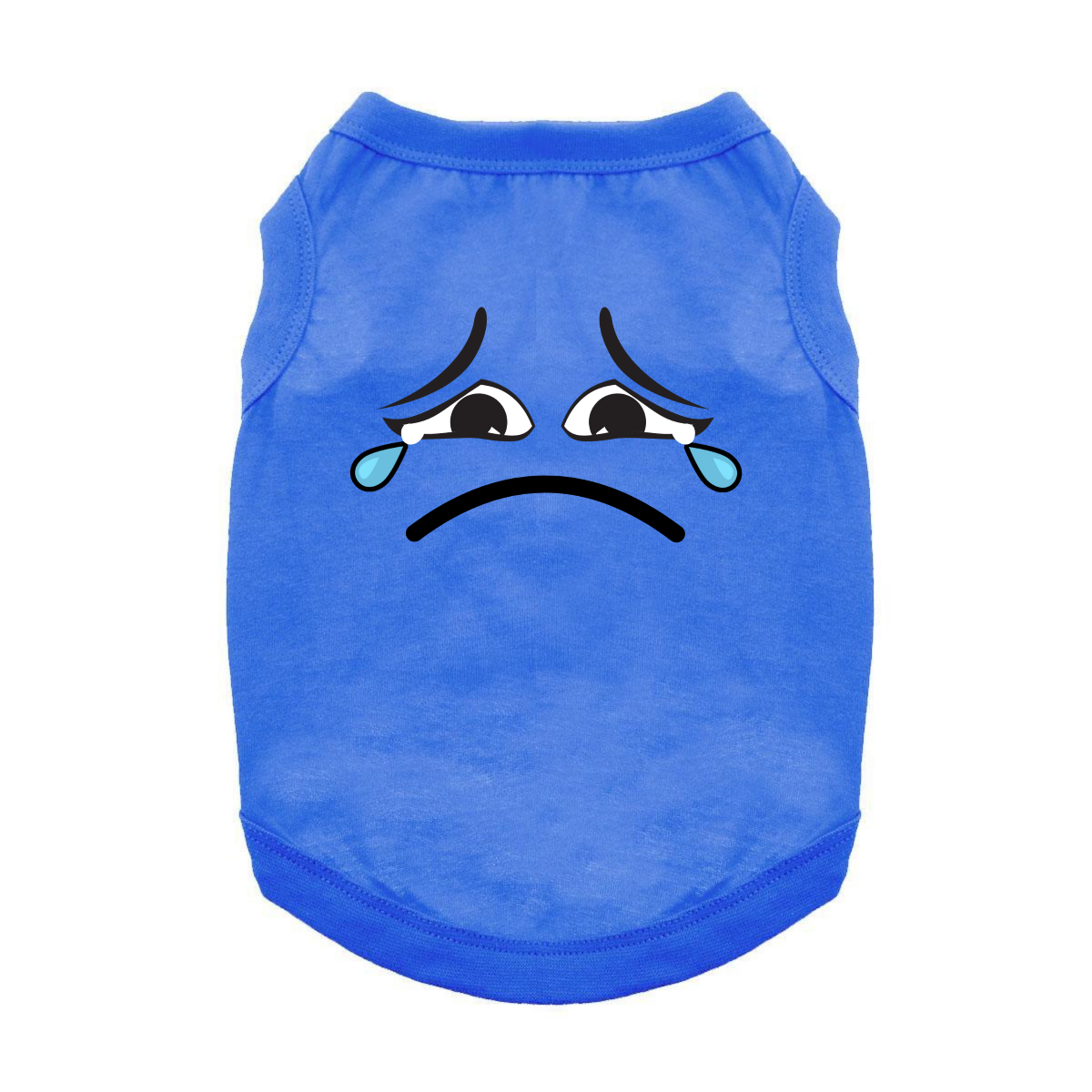 Let your pup show off their dramatic side with the Sad Face Dog Shirt in a rich Nautical Blue. Crafted from 100% breathable cotton, this pullover shirt features an expressive sad face heat print graphic against a deep ocean hue.  Pups can show they're feeling blue or can be great for photoshoots or a playful twist on everyday wear!